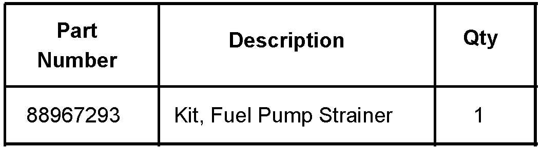 The strainer kit, P/N 88967293, includes two new seals. It is critical that the same design seal be reinstalled that was removed.
