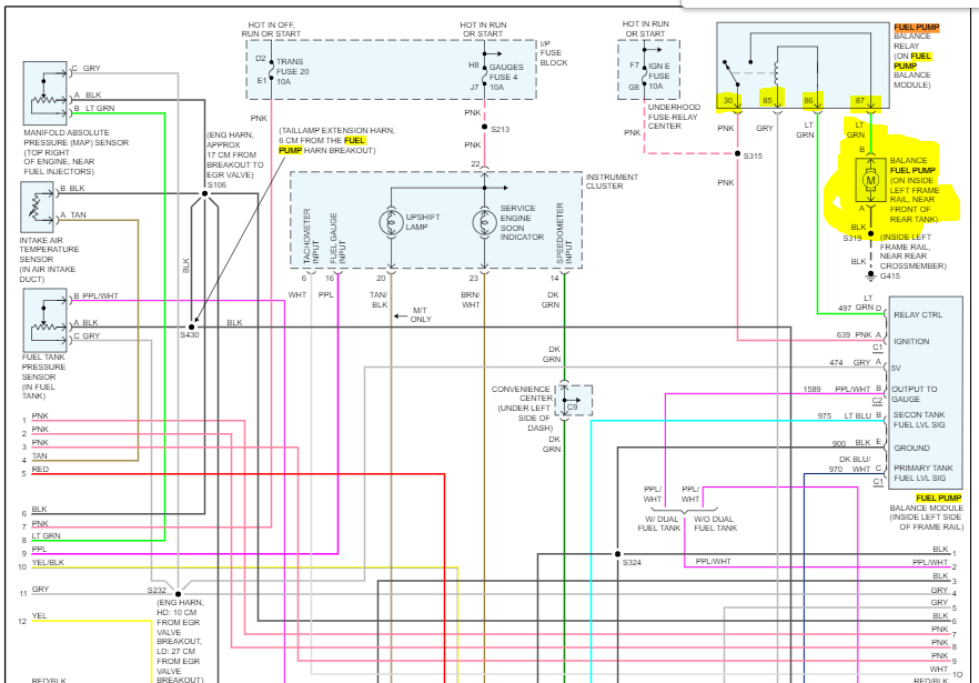 Okay, this is a bit long and convoluted. My truck was running perfectly fine, but I had an oil leak. It looked like it was coming from the oil pressure sending unit but after replacing the sending unit you could tell that the unit was not leaking. However, in the process of replacing the unit I had to remove the distributor cap and when putting it back on I broke the tab that the screw goes in. After a failed attempt to install the plate that is supposed to fix it, I just went ahead and replaced the distributor. When I pulled the old distributor out, I found the gasket was broken in three places which I am fairly sure there was the leak. After putting everything back together and making sure everything was in the correct place, I tried to start it and it would not start. I sprayed carb cleaner in the intake tube, and it fired up and ran fine until the spray ran out. So, I pulled the cap off of the pressure valve and pushed in the Schrader valve and I had no fuel. I had recently (about three years ago) replaced the fuel pump and was told that the new pump would probably not last as long since it was not an OEM pump. So, I replaced the pump and filter but that didn’t work either. I also replaced the relay. Then a guy on YouTube said in his video on how to replace the pump that during the 99-year GM changed the wiring diagram for newer pumps. Now I am left confused and aggravated. Right now, I have it wired according to the instructions that came with the new pump. But I’m getting nothing from it. For a while it was buzzing like it was working and you could see some fuel going into the hose but not enough to get to the Schrader valve or to build any kind of pressure. I don’t know if I burned up the new pump or if I have a wiring problem. Any thoughts, ideas or suggestions would be greatly appreciated. Thank you.