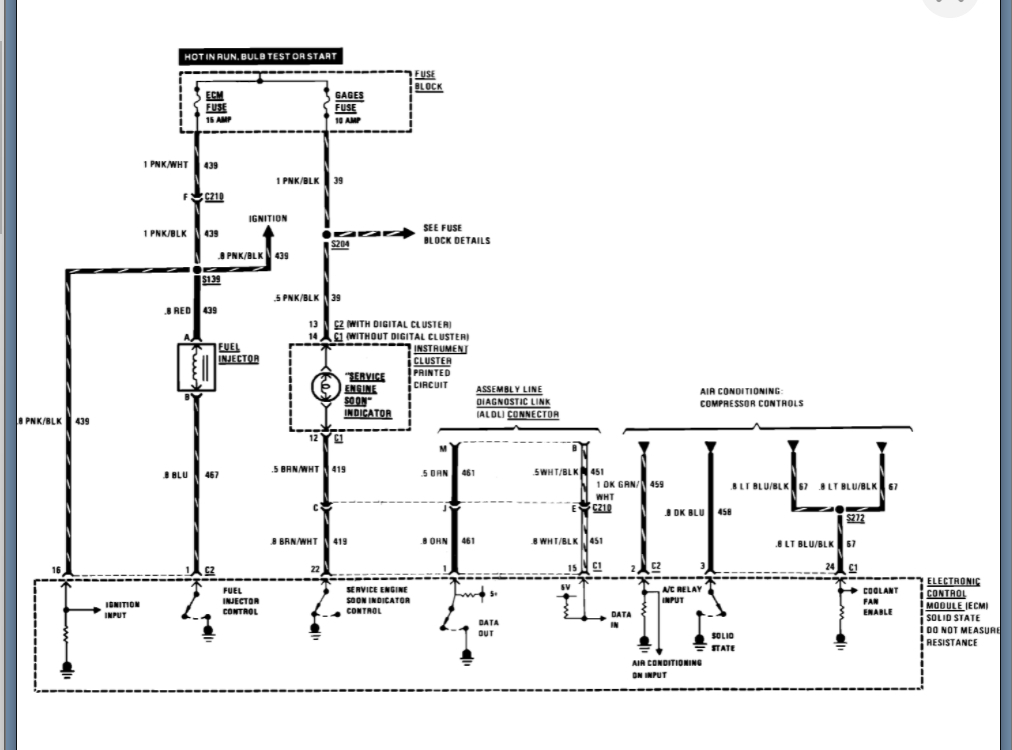 I am attaching the wiring diagram but the way this works is power is supplied at all times to the injector and the ground is turned on and off by the electronic control module.