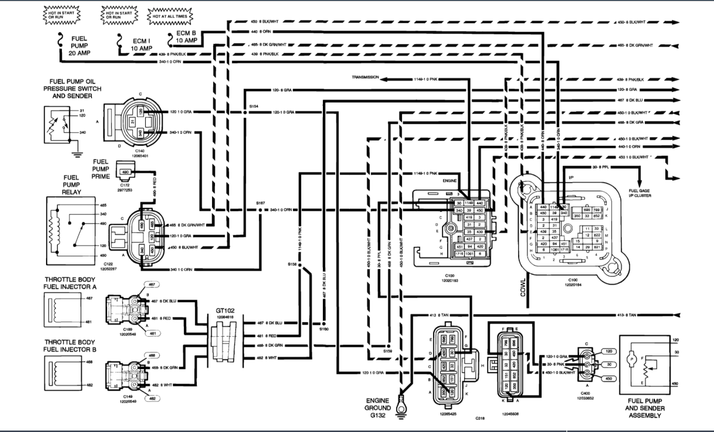 I attached a wiring diagram for you. It is an old diagram but shows the wires and colors. You need to remove the connector for the fuel pump at the tank and test for power when you turn the key on. There will be power for 2 seconds until you crank the engine. Then it should have constant voltage.