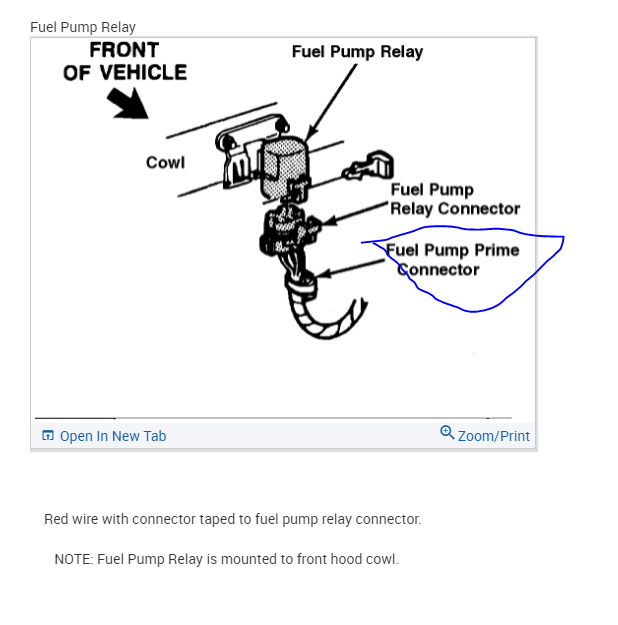 There is a primer connector secured to the harness at the relay. Use a jumper wire from the battery positive to the connector. The fuel pump should come on as it is a direct shot to the fuel pump.