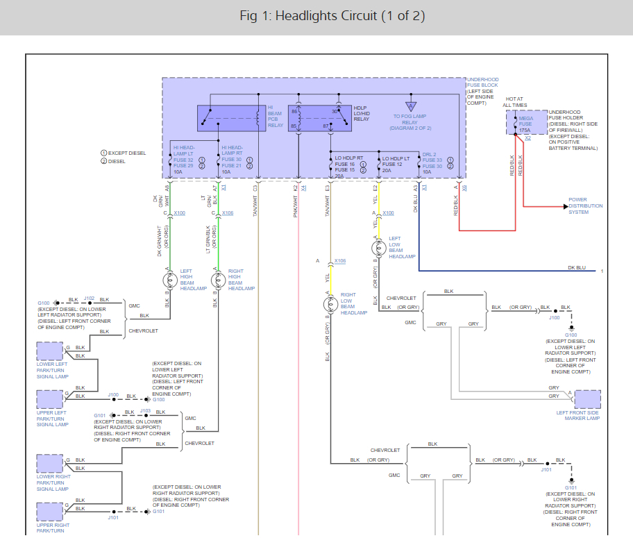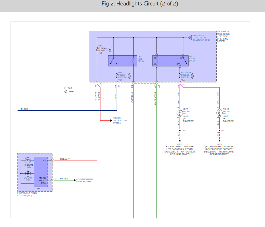My Low beams work and function as they should, when you try to flip to high beam little blue light appears on dash, but no lights. The fuse cluster is brand new. I spent the last couple of hours with a test light testing every port and think I found the culprit. There is a white and blue/purple(?) Wire leading out of each headlight assembly. The one from the pass side heads over to the driver's side. I believe this is ground... Maybe? Can you confirm? Would a bad ground be causing these symptoms? Where does this actually ground out at? I Did some searching and couldn’t see it. Also, this truck has a Boss snowplow and has the snowplow relays. All of these relays are brand new, so I don’t believe one of those is causing this.
