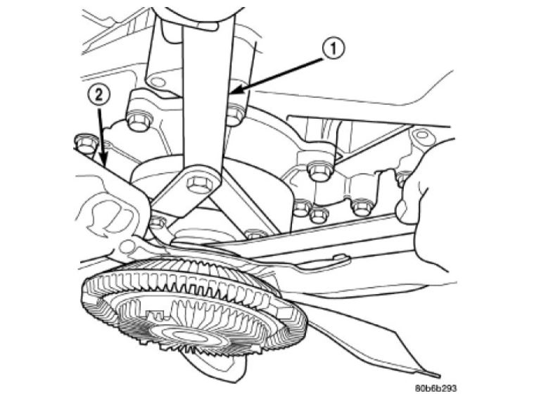 5. Remove upper fan shroud and fan blade/viscous fan drive assembly from vehicle.