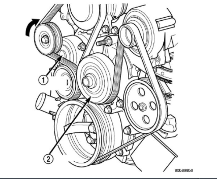 7. Remove accessory drive belt (1) See: Drive Belt > Removal and Replacement > Accessory Drive Belt - Removal.