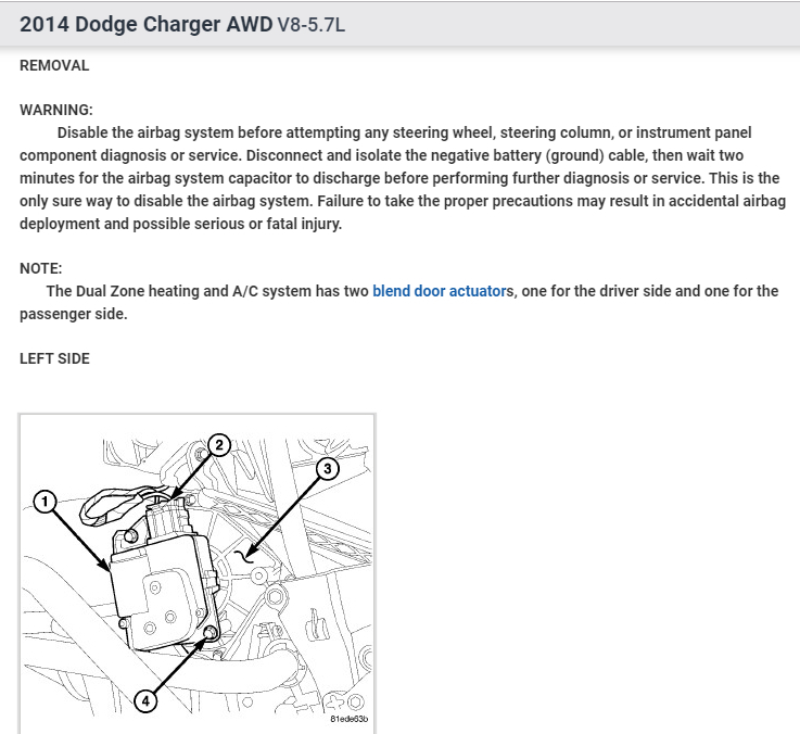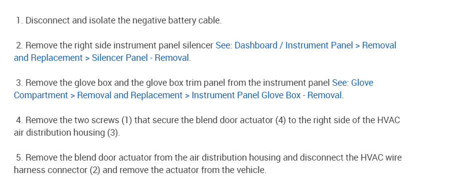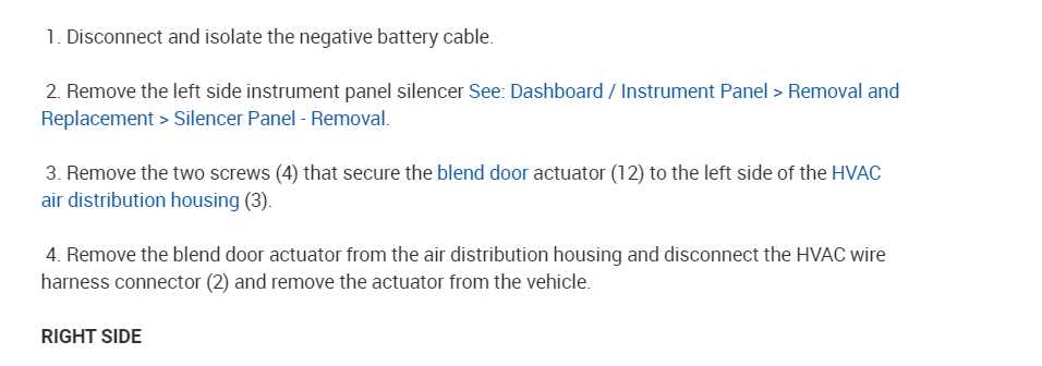 In the diagrams down below i have included a guide from the vehicle manufacturer for your vehicle's blend door actuator removal and installation. Please go through these guides and get back to us with what you are able to find out.