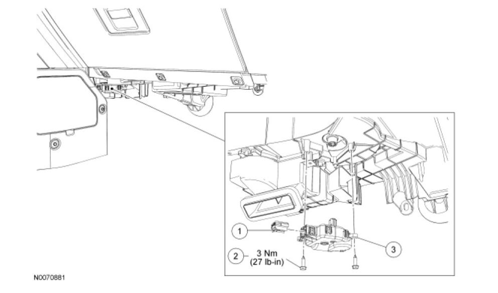 NOTE: The LH temperature blend door actuator is present on dual-zone Electronic Automatic Temperature Control (EATC) vehicles to control the LH temperature blend door only. Vehicles equipped with Electronic Manual Temperature Control (EMTC) are not equipped with this actuator. For EMTC vehicles, refer to Temperature Blend Door Actuator - RH See: Air Door Actuator / Motor, HVAC > Removal and Replacement > Temperature Blend Door Actuator - RH.