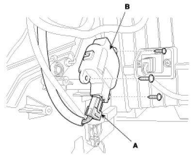 Disconnect the temperature control actuator connector (A) after removing the air duct.
