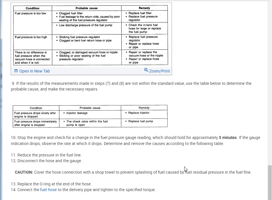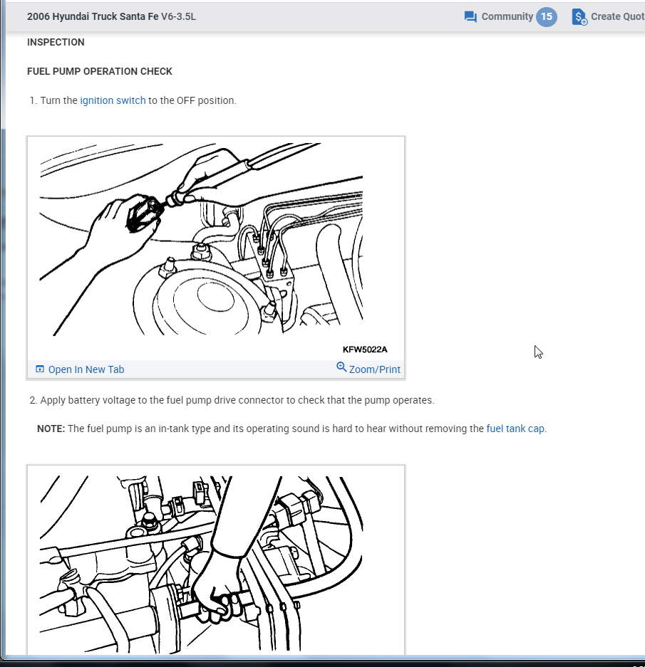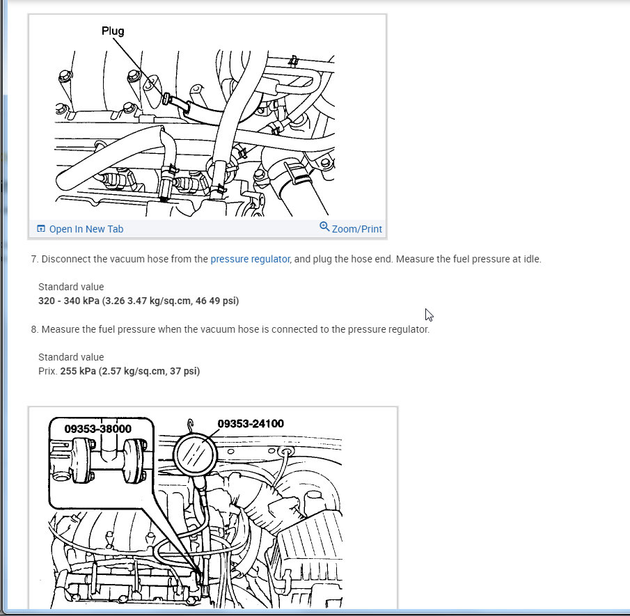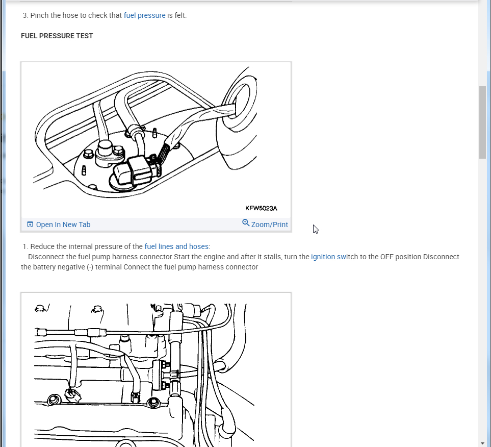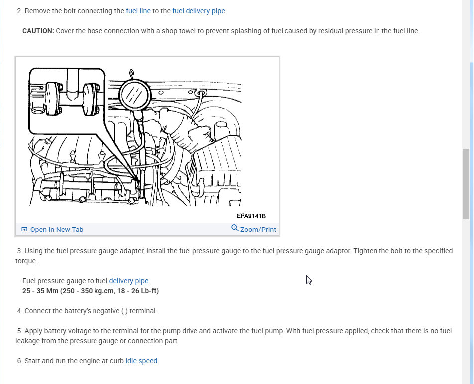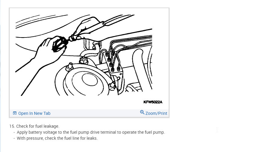 If it does then we need to check for pressure to make sure the pump is able to not only turn on but build the needed pressure. This asks you to pinch the fuel line to see if there is pressure. That is fine for an initial test but we need the pressure gauge to make sure it is building enough pressure.