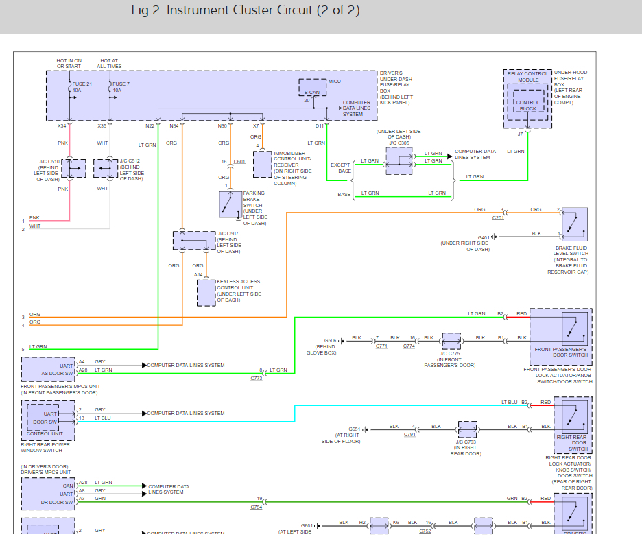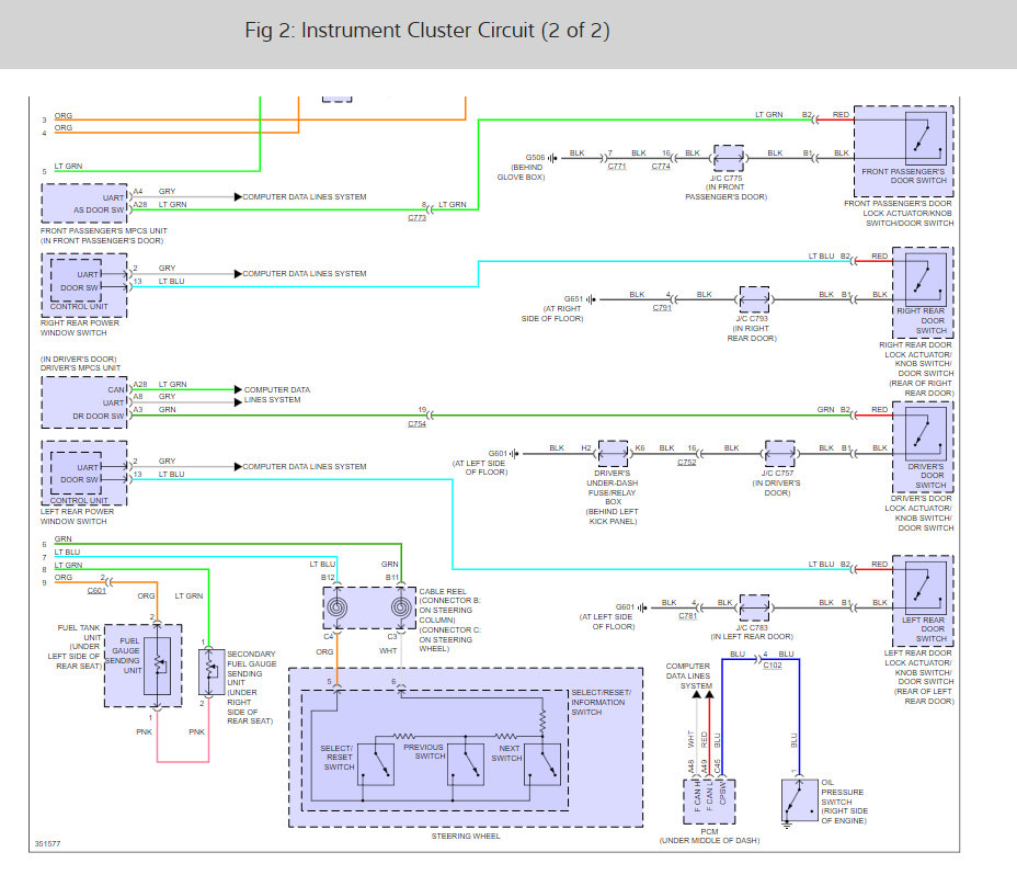 It sounds like you have a fuse out here is a guide that will help you check fuses # 7 and 21 and the fuse location as well with the cluster wiring diagrams so you can see how the system works.