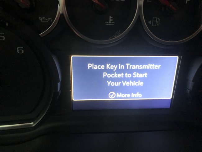 So the way this key works is the vehicles has antennas placed around the vehicle and it looks at signal strength of the key on each antenna and it uses this to triangulate where the key is. It needs to see the key inside the vehicle in order to start the vehicle. Can you get a picture of where this key is and what the message is stating?