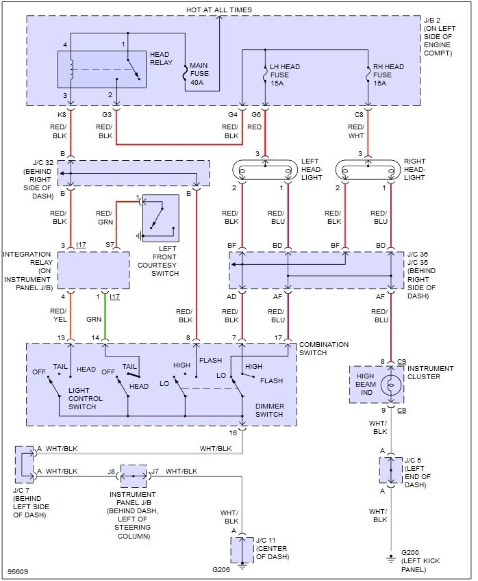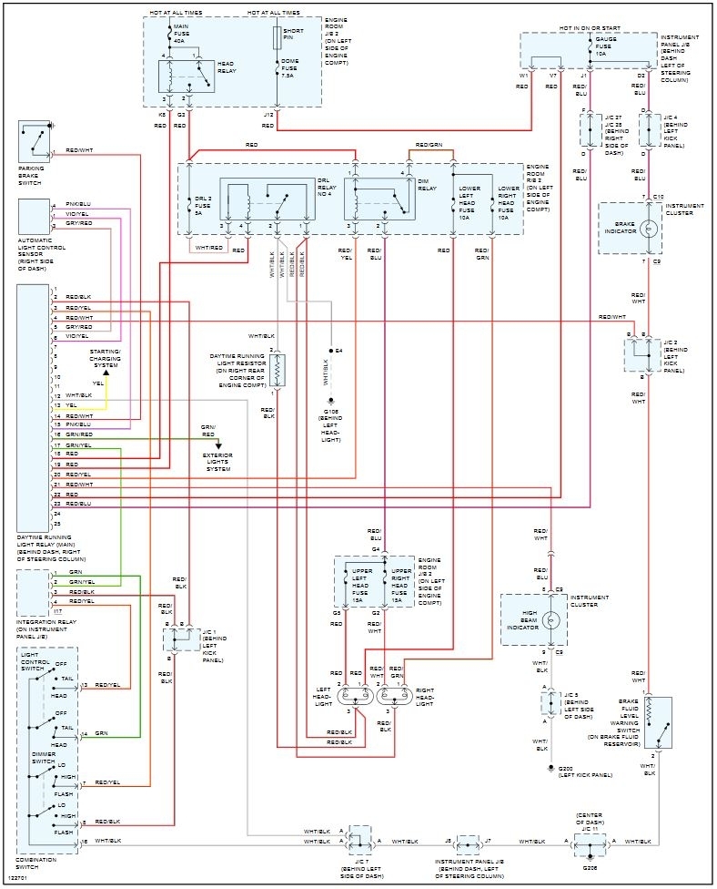 It sounds to me that you may have a bad combination switch. Sometimes they call them a stalk switch. It sounds to me like the dimmer switch is malfunctioning and since they do not sell these separately you would need to replace the whole switch. I have included some wiring diagrams (one with DRL and the other without DRL) so you know how the system works as well as instructions on how to replace it.