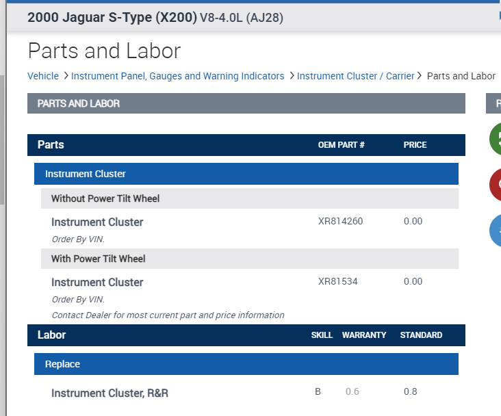 You are welcome. You are correct that this is not the cheapest part to replace because there are no aftermarket options. The replacement cluster from Jaguar are discontinued so you are left with salvage yards, but this is never desirable for a part like this.