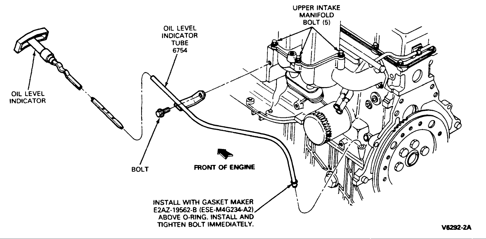 11. Install engine oil dipstick and retaining bolt.