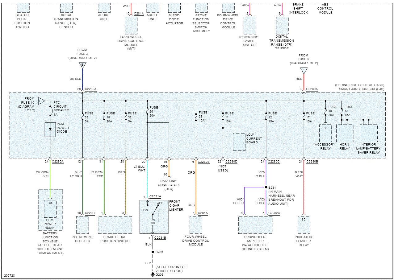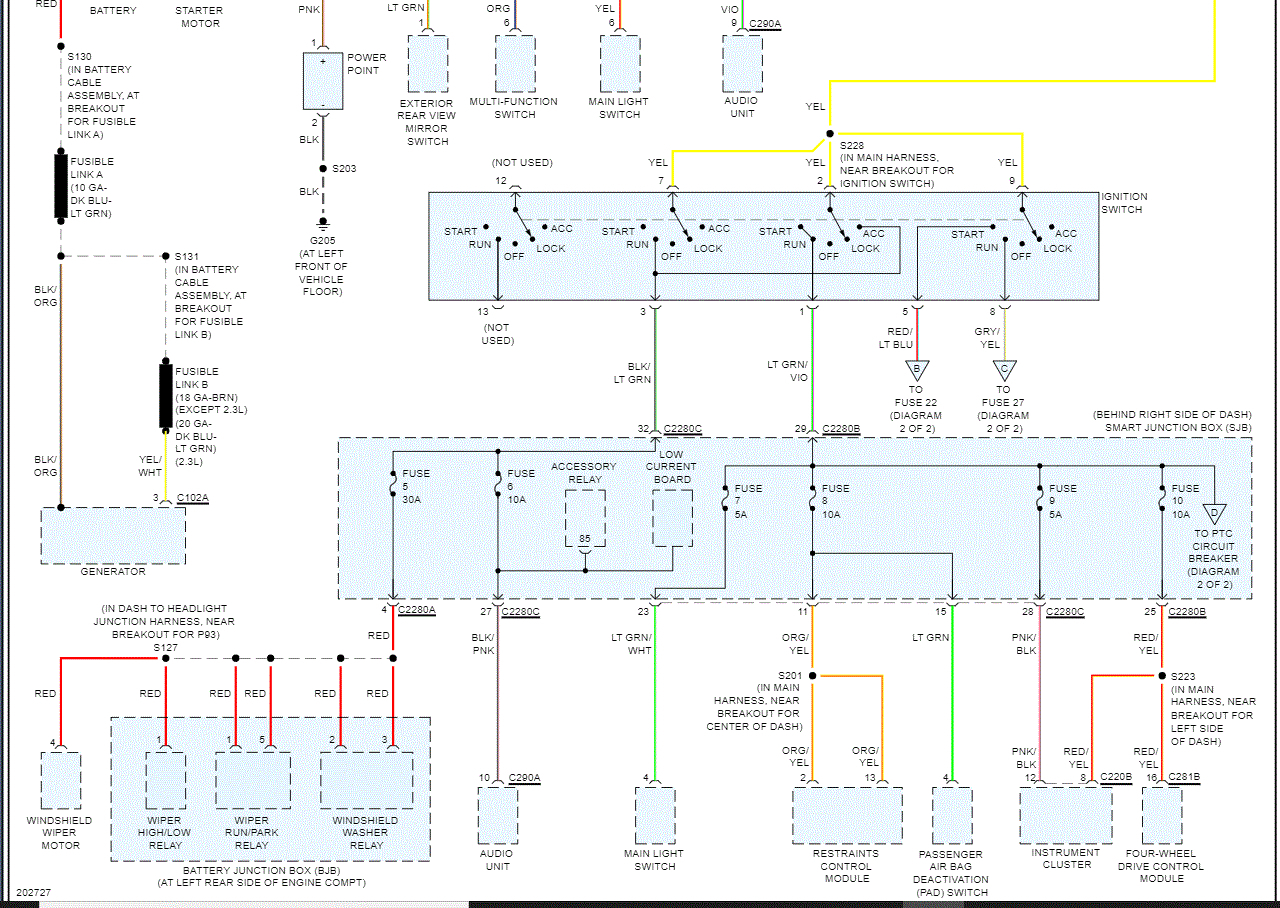 I attached the wiring schematics for the power and ground circuits below as a reference. There are a total of 8 pics below. The first 4 are power distribution and the last 4 are the ground. After confirming the ground terminal on the battery is good and tight, I highlighted where to check the main battery grounds on the engine. (See pic 5)