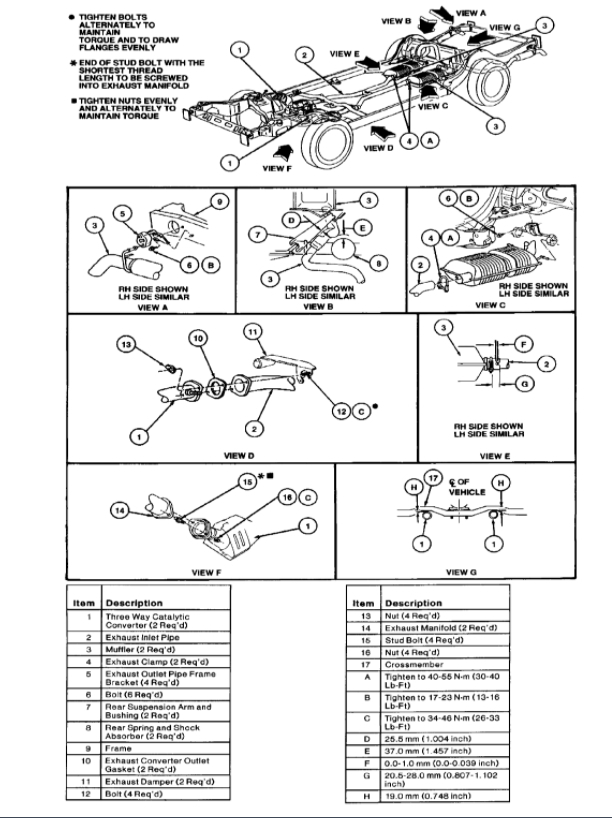 6. Alternately tighten the exhaust manifold nuts to 34-46 Nm (26-33 lb ft).