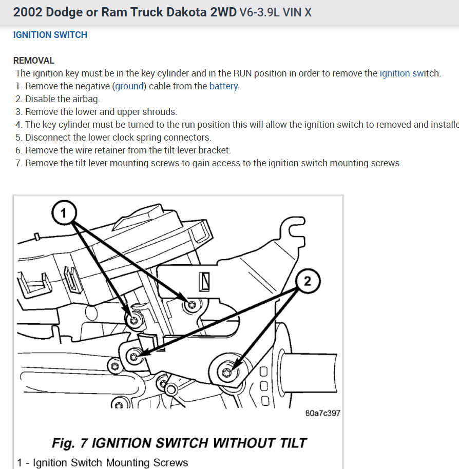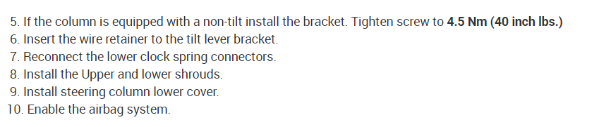 Note: damage steering column: