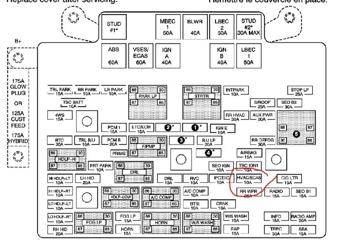 The first thing I suspect is a blown fuse. In the under hood fuse box, you will find a 10 amp fuse labeled HVAC/ERAS. I attached three pictures to help you. The first one is a picture of the fuse box. I circled the fuse. The second picture is a close up of the fuse and I circled it. Third is simply what the fuse is for.