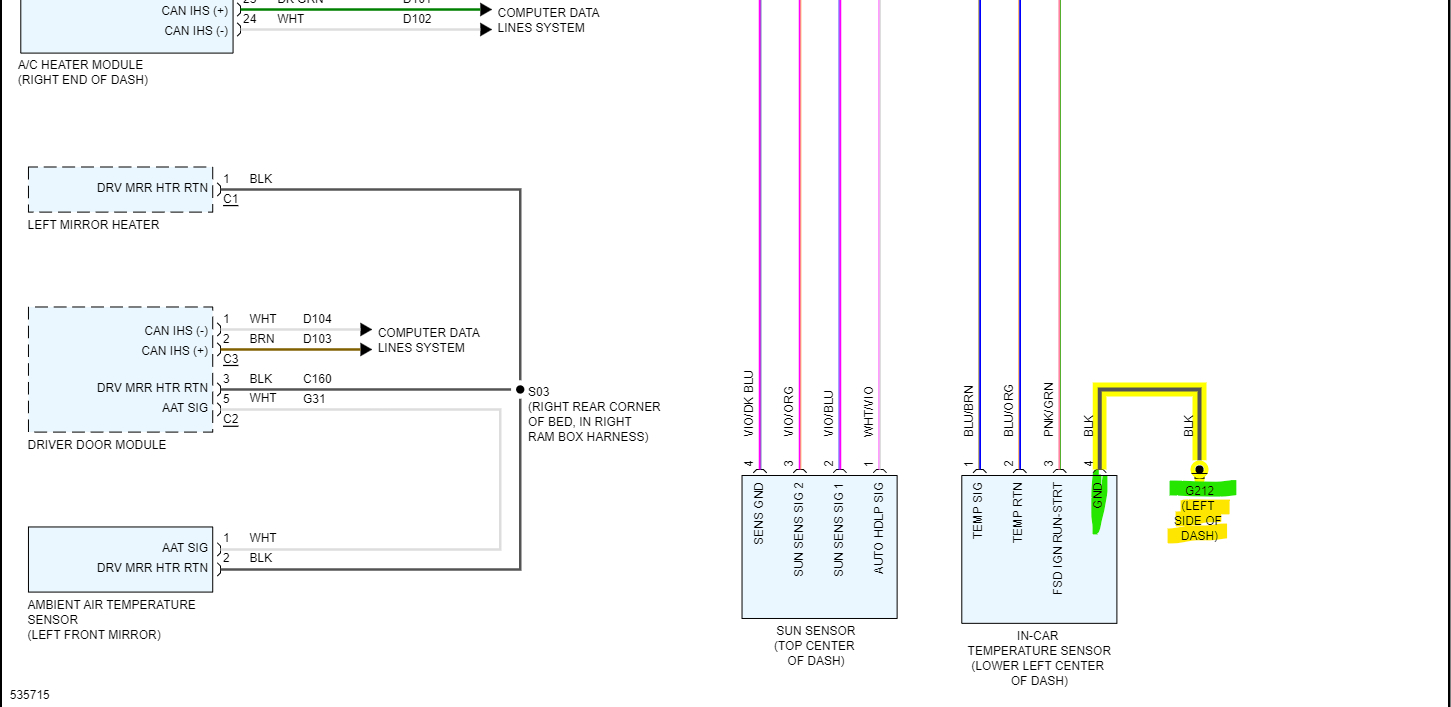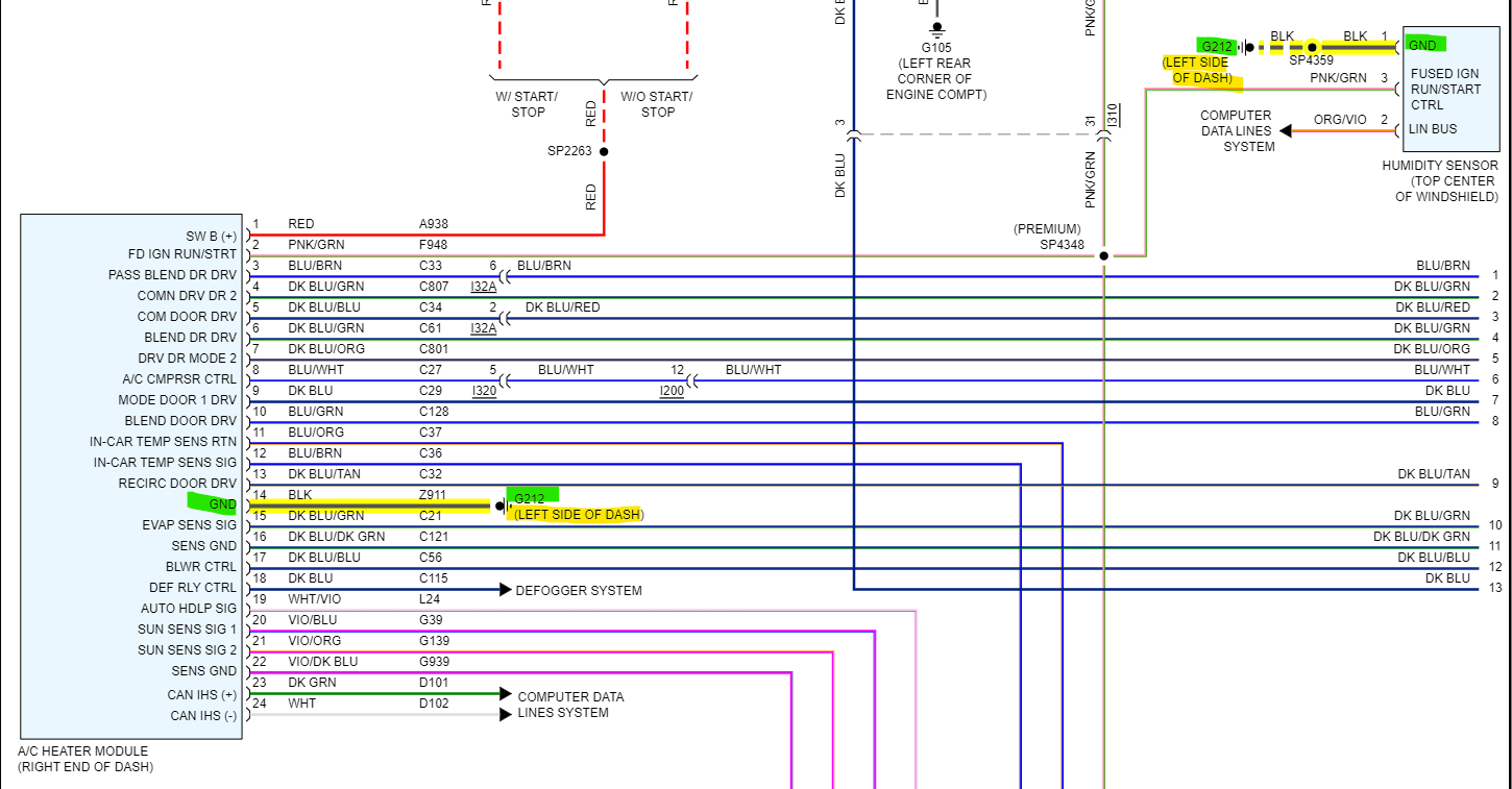 The 2nd possibility is a Ground G212 although it doesn't explain the 9 volts reading. Its Ground for the Hvac module, humidity sensor, In-car temp sensor, And the Keyless Ignition Node Module. (Diagrams 5 through 7).