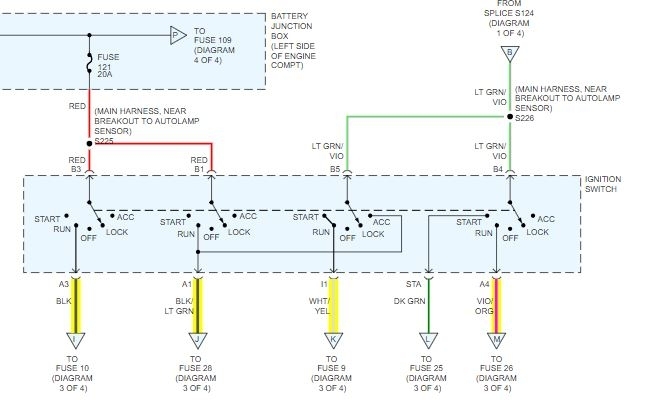 Check the wires highlighted for power with the key on as they feed all the accessories.