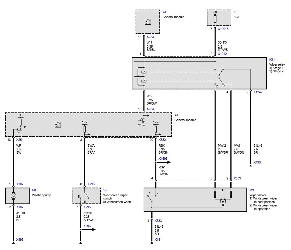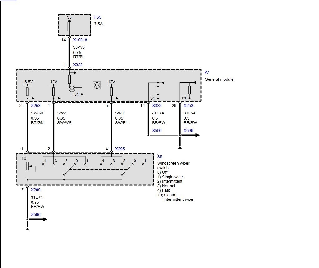 The spray comes on but the wiper does not. Check the motor and it is working but there is no electrical supply to the motor. Any diagrams will be helpful.