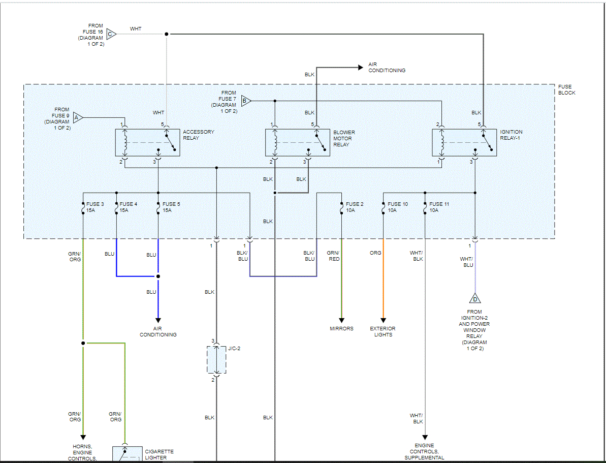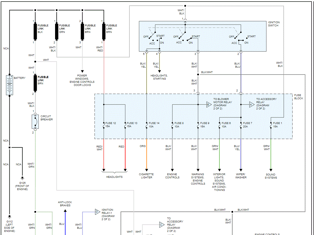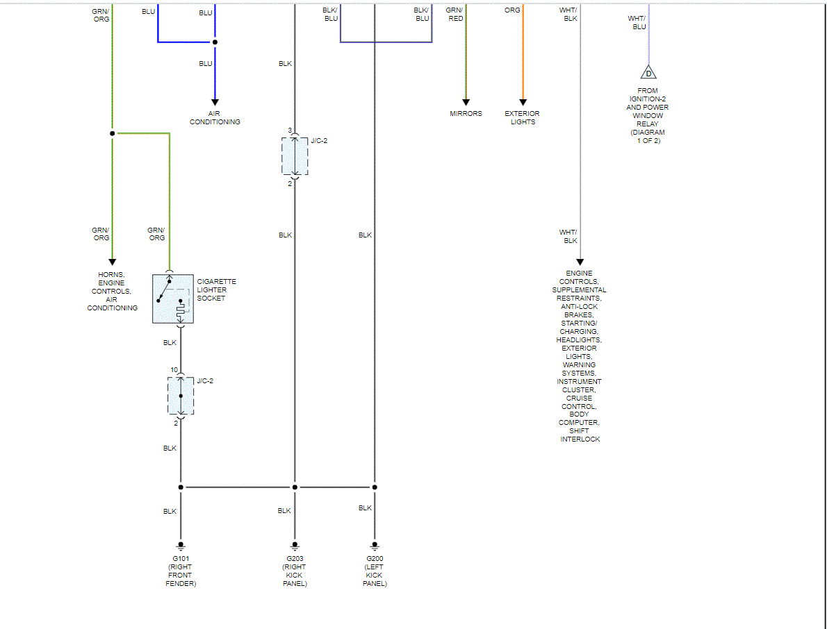 I looked through the power distribution schematics and there is nothing that just shuts off the interior. Do me a favor. Take a look through the schematics and let me know if you notice anything that correlates with what is not working. It's odd because I was thinking the ignition two relay may have been the issue, but you said the truck runs, and that powers not only several interior components but also the engine controls. I can't seem to find a break where things that are presently working break away from the non-working components.