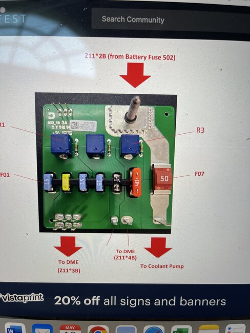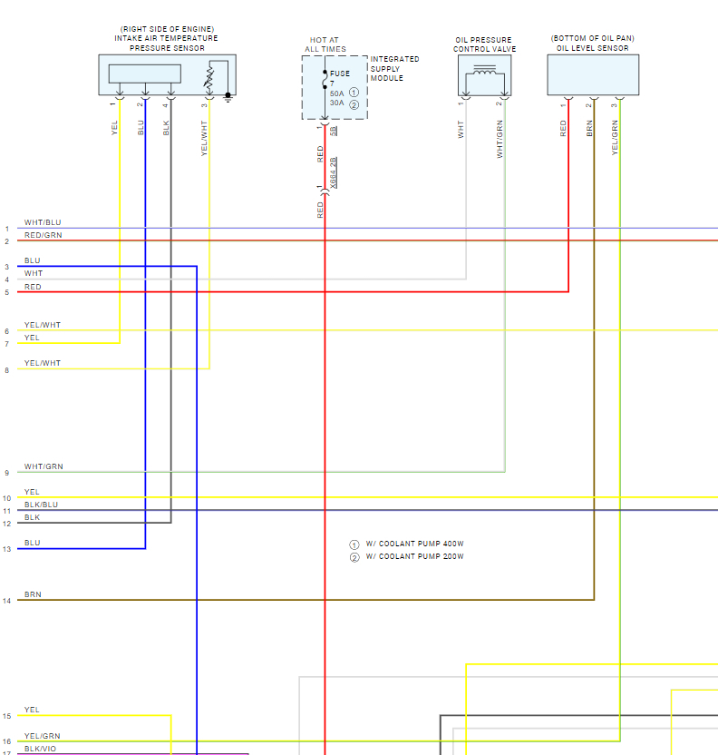 I bought this car with 90,000 on it. Keeps giving a message when run for a while that its overheating. No leaks, full coolant, fan comes on. Only code is cd9010, not much info online other than it could be the pump or wiring. I removed the coolant pump connector, whether car on or off thick brown has ground. Thick red has nothing. 2 small wires have some readings, one I think was 14.3 and the other 10.2 I think those are data and signal. Where does this power wire go to? I pinched it from up where it runs and still no power.