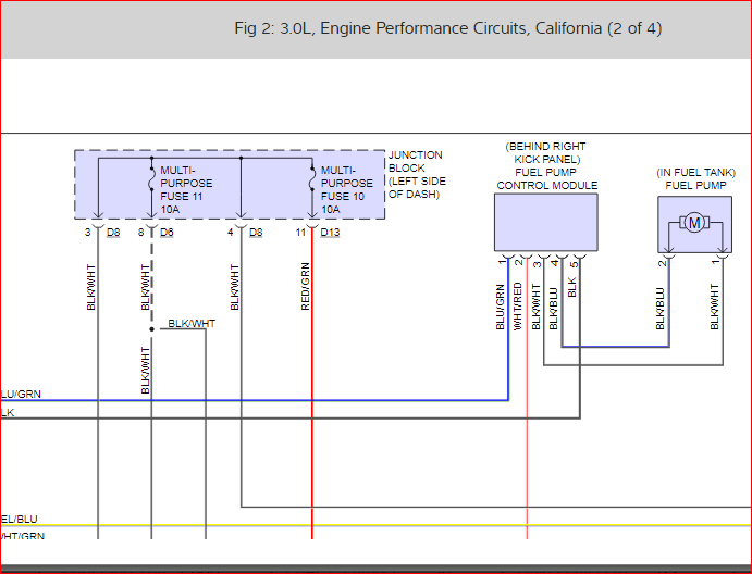 I have the sport model. I got the car and it had a broken timing belt, when it broke it bent all the valves, so I replaced both heads and cam and crank sensor as the belt ripped the wires when it broke, I got the car to start and run, but it developed a very unusual problem, sometimes when I was driving it would just shut off even a cruising speeds, I would coast to the shoulder and it would start right back up, then one day we went out turned it off and did our errands came out and it would not start, so had it towed home, I checked I was getting spark but no fuel, replaced fuel pump, still no fuel, checked no power to fuel pump, so at this point I've replaced, PCM, immobilizer, key switch and key all programmed together, fuel pump replace, MFI replay, fuel pump control module I have no codes at all. I found corrosion on the wiring just above the relays, as the harness comes out from the firewall, took the harness apart and the wires looked corroded and spliced not factory, order a used harness off of eBay installed it, everything fits. But no plug for the fuel pump control module. So I am not sure what to do at this point.