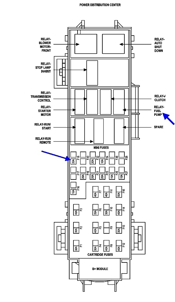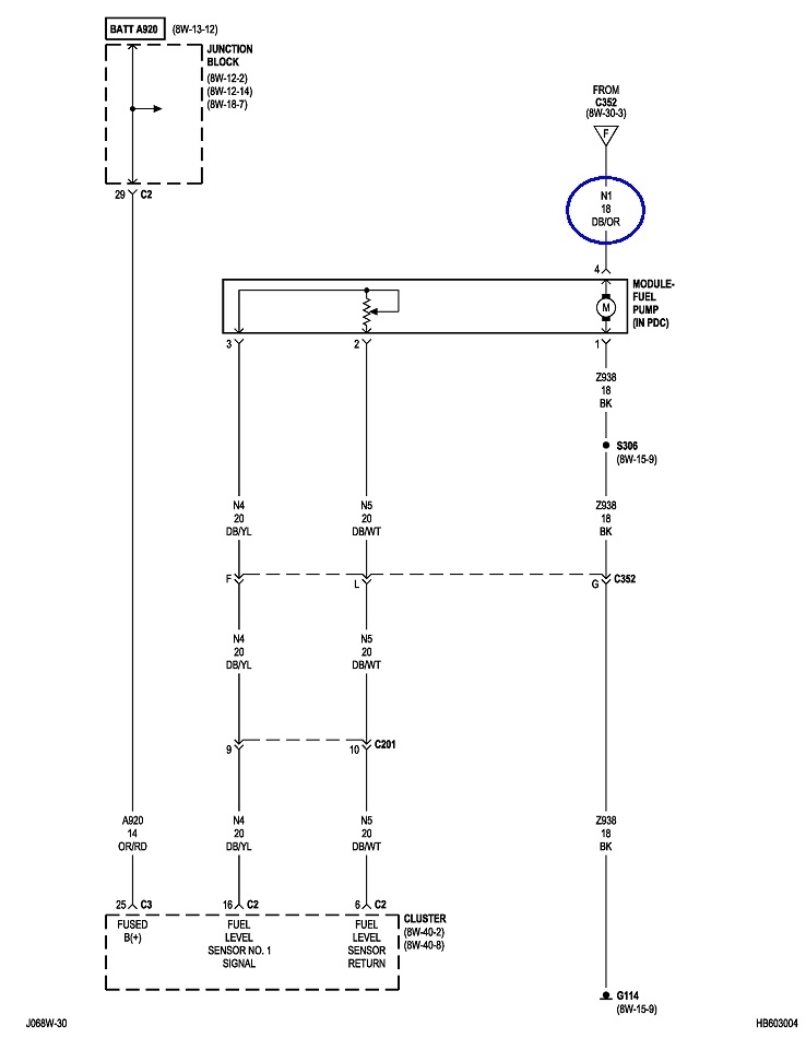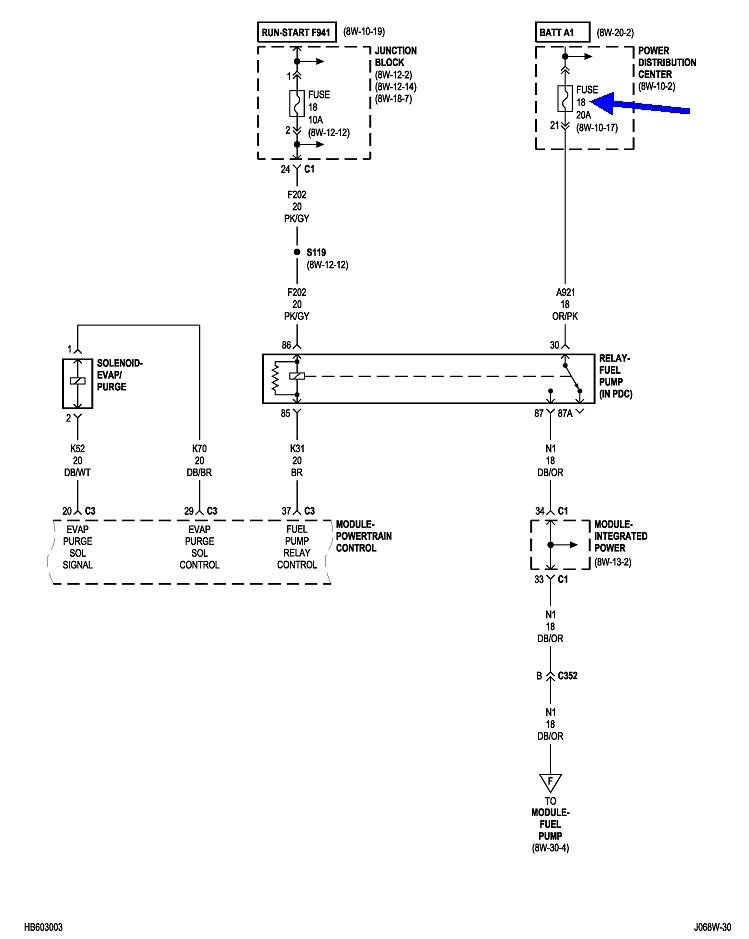 Vehicle was running fine. Went to start it, and it cranked over, but wouldn't run. Noticed I didn't hear the fuel pump when I turned key. The connector for the pump assembly has 4 terminals. Was getting power to 2. Assumed these were for the fuel level indicator. Checked the fuel pump relay for proper operation, okay. Checked fuses before relay, okay. Not getting power to fuel pump relay When initially turning key or when continuing to crank to start. Does some one have electrical diagram of circuit before the fuel pump relay?
