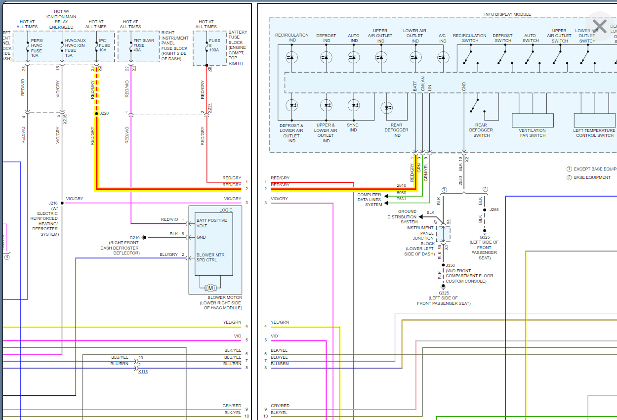 Sounds like your fuses are good. At this point it sounds like a possible HVAC controller. To be sure you can remove the controller and verify proper power and ground to the HVAC unit before replacing. I have attached the procedure to remove the HVAC controller, and info display module and what wires to check. The controller is different then the info display module which in your case is not working. Remove the controller behind glove box area and Check pin 1 at the HVAC controller connector x1 for battery voltage. If that checks good remove to info display module and check for battery voltage at connector x2 and check for battery voltage on pin 1. Also check for ground at pin 10 same connector the black wire. If you have good battery voltages on these checks It sounds like you may need a info display module. Could be something else please let me know what you find on your voltage checks.