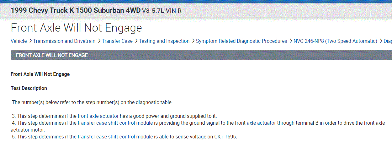 Having a hard time diagnosing issues related to my 4x4. Both the front axle actuator and encoder motor on side of transfer case have been replaced and as far as I can tell my listening to them are functioning. I’ve got the electronic buttons for 4 wheel drive and they appear to be working as they should. When I put the truck into 4 hi it sounds like it engages but the front two wheels have to power to them. Same thing happens in 4 low. Is there maybe something I could check on the transfer case itself? Any helps appreciated.