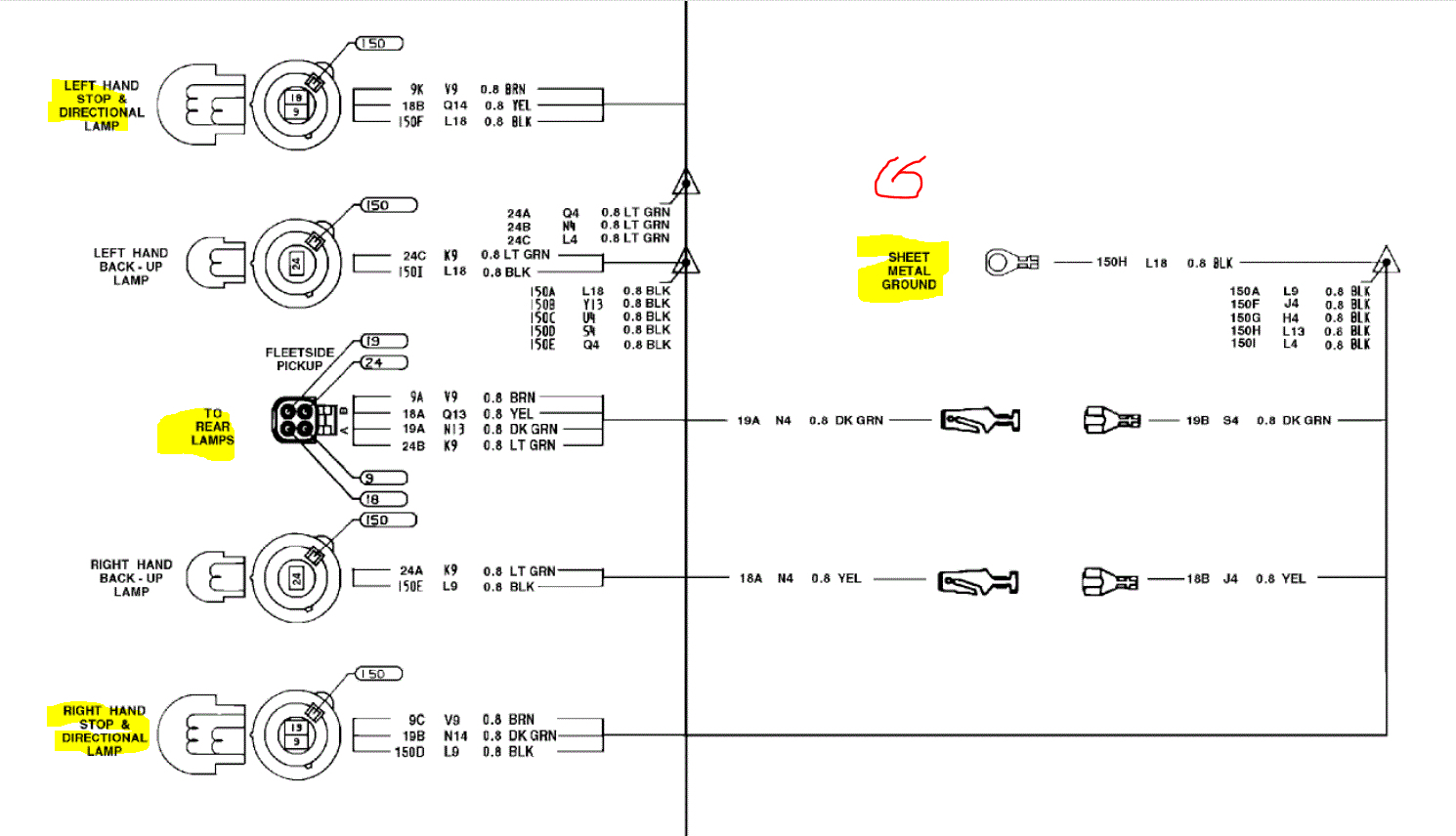 I attached the only wiring schematic below for you to see below. There is a connector (If I recall, it is on the driver's side frame behind the rear wheel. Check to see if that is damaged, corroded, or disconnected.