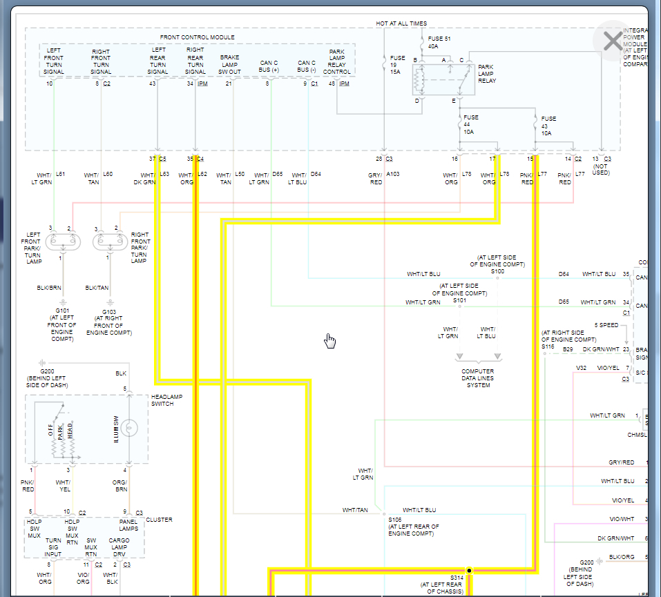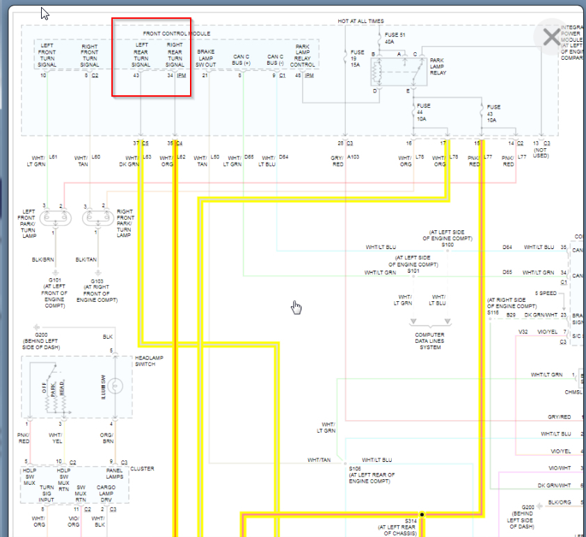As for this other info, this is just another website where someone is interpreting the information they are reading from the manual or the way they think it works. They sound knowledgeable but just not accurate. Take a look at the wiring diagram. The front and rear turn signals are controlled directly out of the FCM.