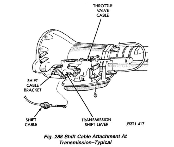 9. Snap shift cable adjuster into mounting bracket on transmission.