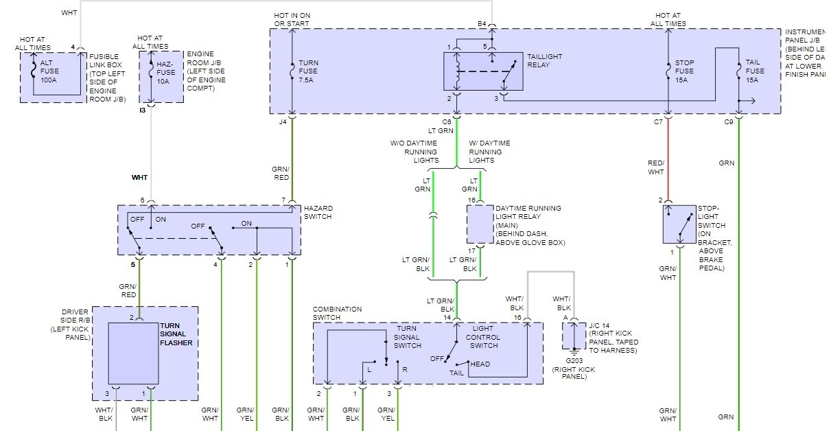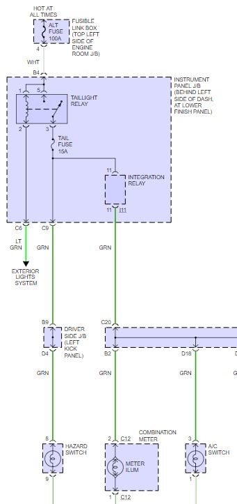 We stopped the car for about ten minutes and when I got back in and started the car, there were no lights. The headlights, turn signals, brake lights, and flashers all work fine. The dome light is blown out so I am not certain if that has been affected.