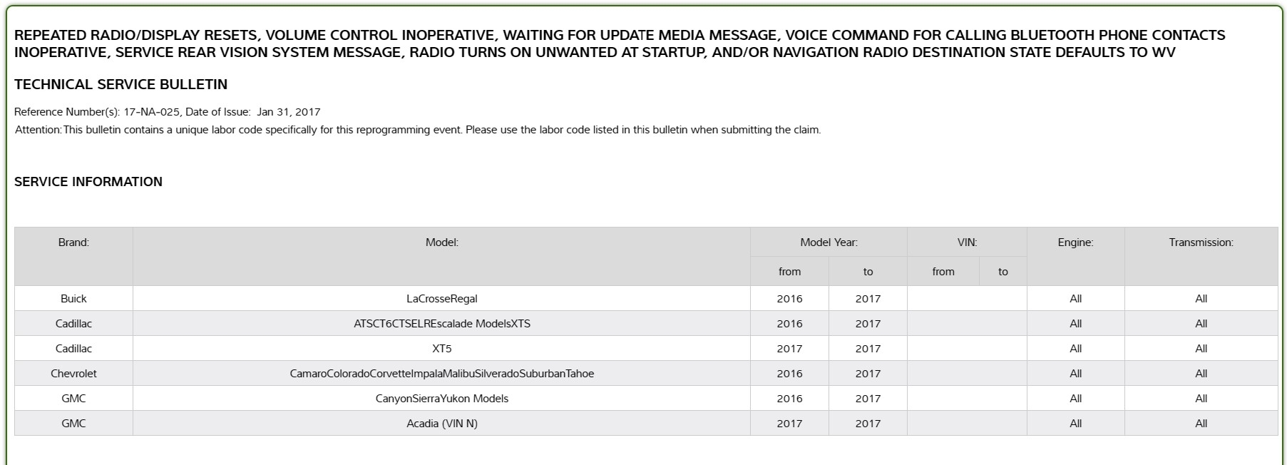 So, this is known issue by GM and affects many models.
