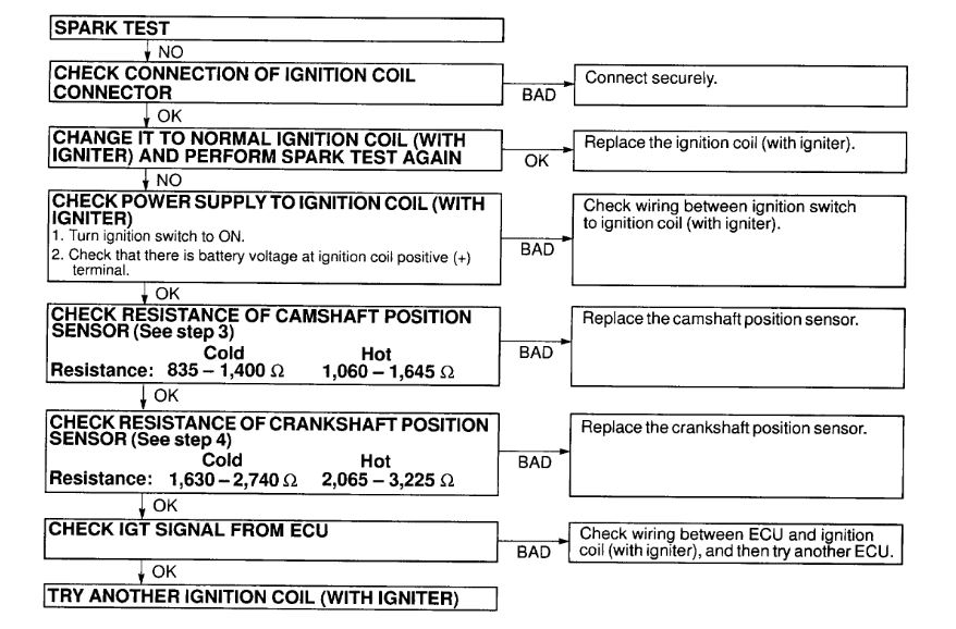 NOTE: To prevent gasoline from being injected from injectors during this test, crank the engine for no more than 5 - 10 seconds at time.