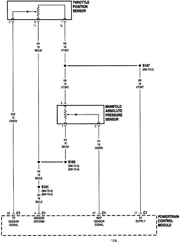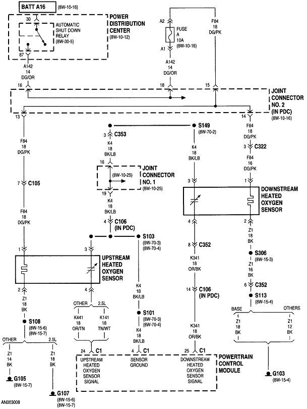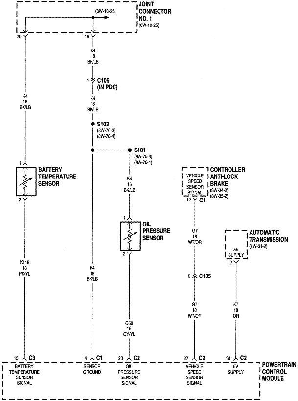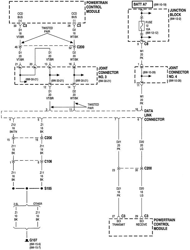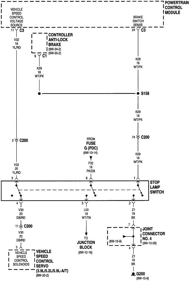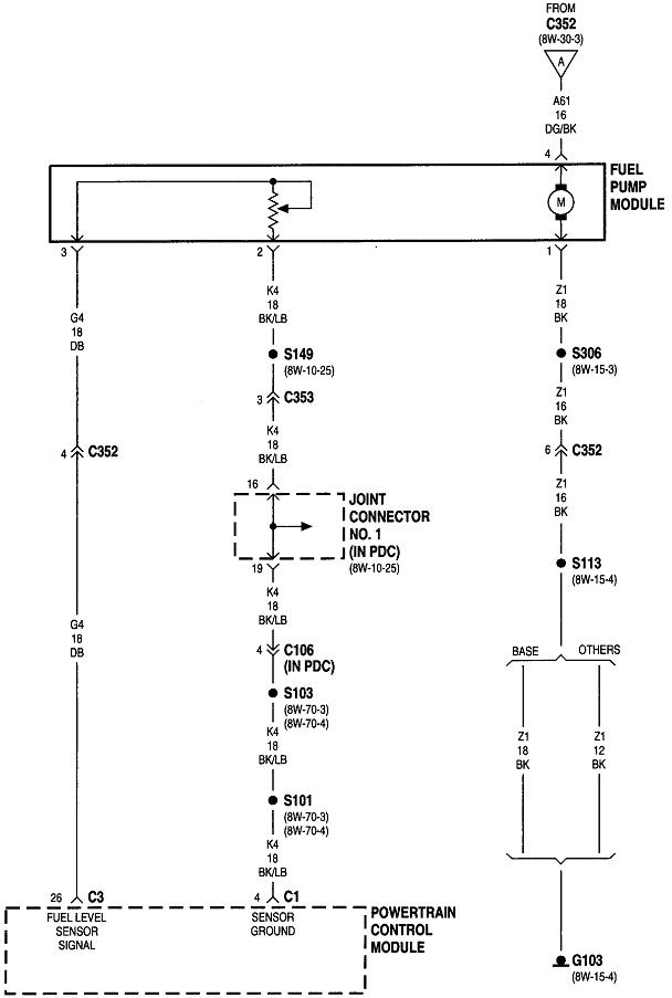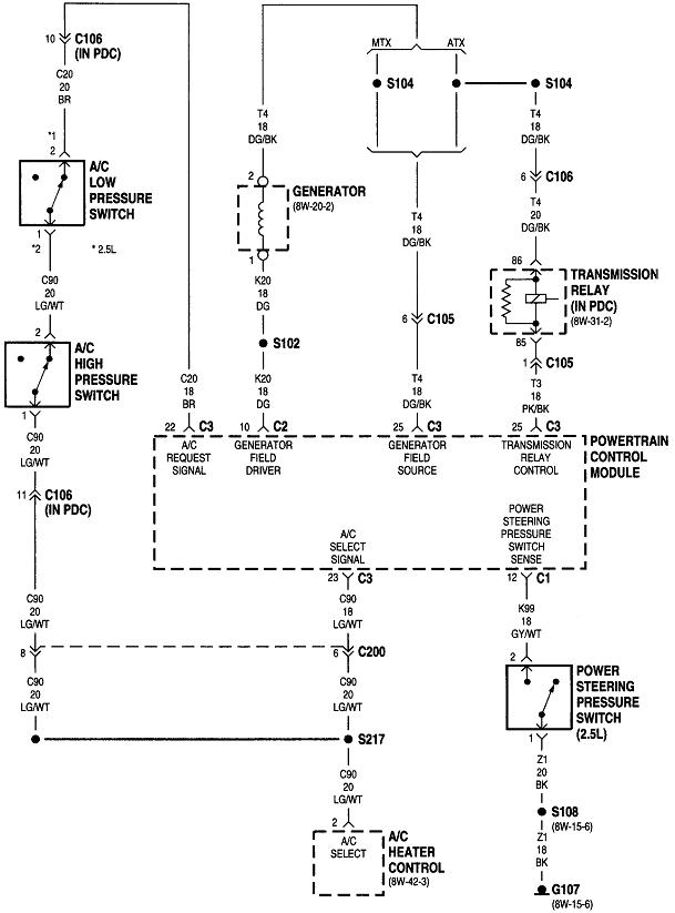 The ASD relay sends current to the ignition coil, injectors, alternator field, oxygen sensor heaters, and the fuel pump or pump relay. On your truck that is the dark green / orange wire. Back-probe with the test light through the rubber seal around that wire at the ignition coil or any injector. You can also use either of the two smaller terminals on the back of the alternator, but those are usually not real easy to reach. Expect to see the test light turn on full brightness for one second when you turn on the ignition switch. Next, it must turn on again when you start cranking the engine. This is where you'll usually find it does not when you have a crank / no-start problem.