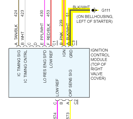 Next, at the ignition control module, locate the pink wire. With the key in the run position, check that wire for power. If there is power, check the black wire for continuity to ground.