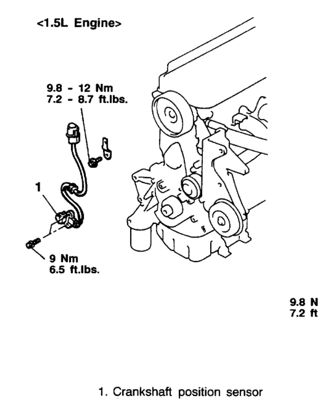 This model Mitsubishi isn't offered in the US, but I believe the Mitsubishi Mirage is very similar. The Mirage has a 1.5L and the crankshaft position sensor is behind the timing belt cover. I'm not 100% sure if it is the same, but I hope this helps.