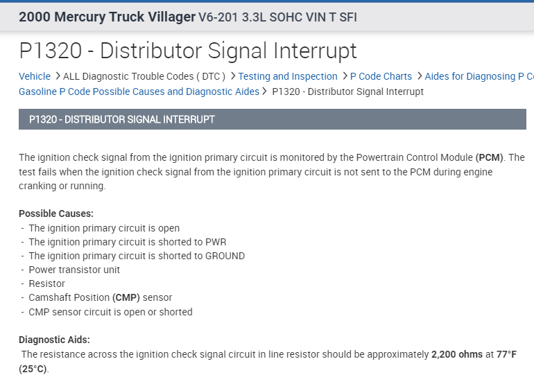 Van will not start, there is no spark. Got code with my code p1320. I change the coil, still nothing. Can you help me?