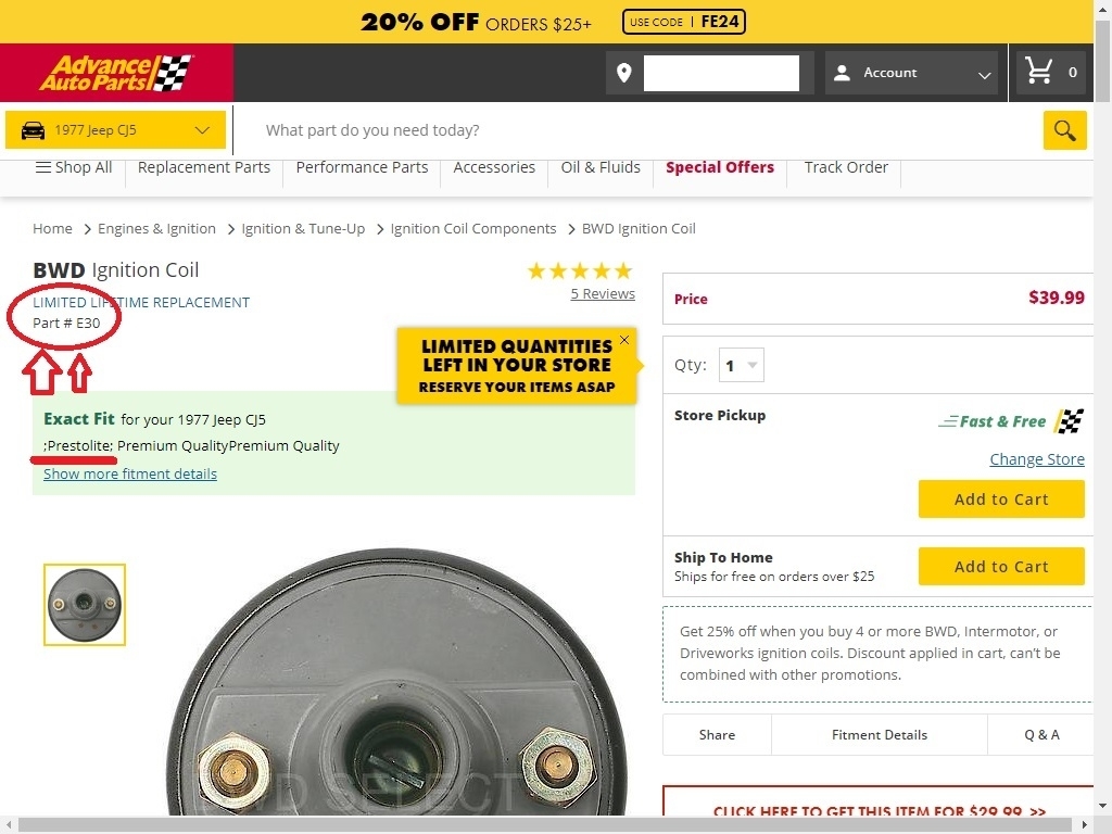 I also made you some screenshots from Advance Auto Parts of the correct coil.