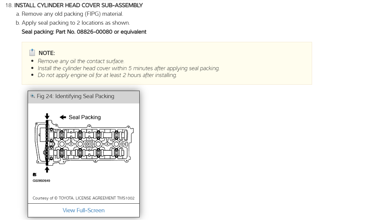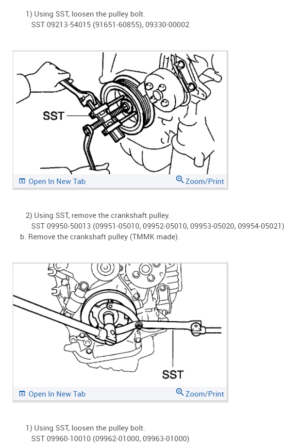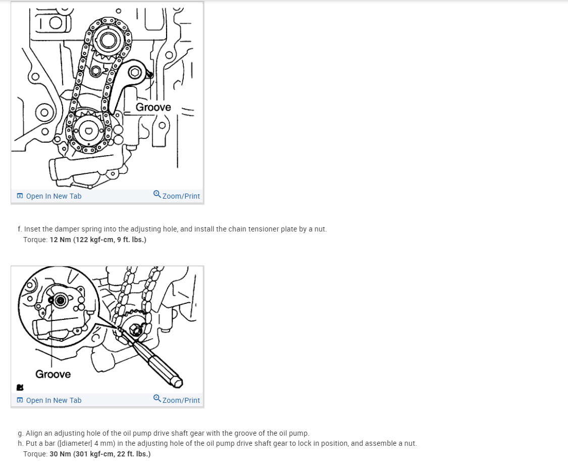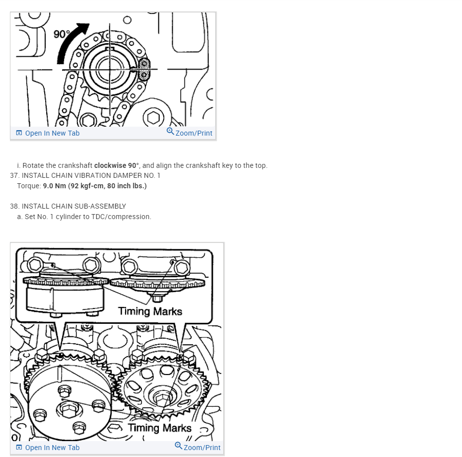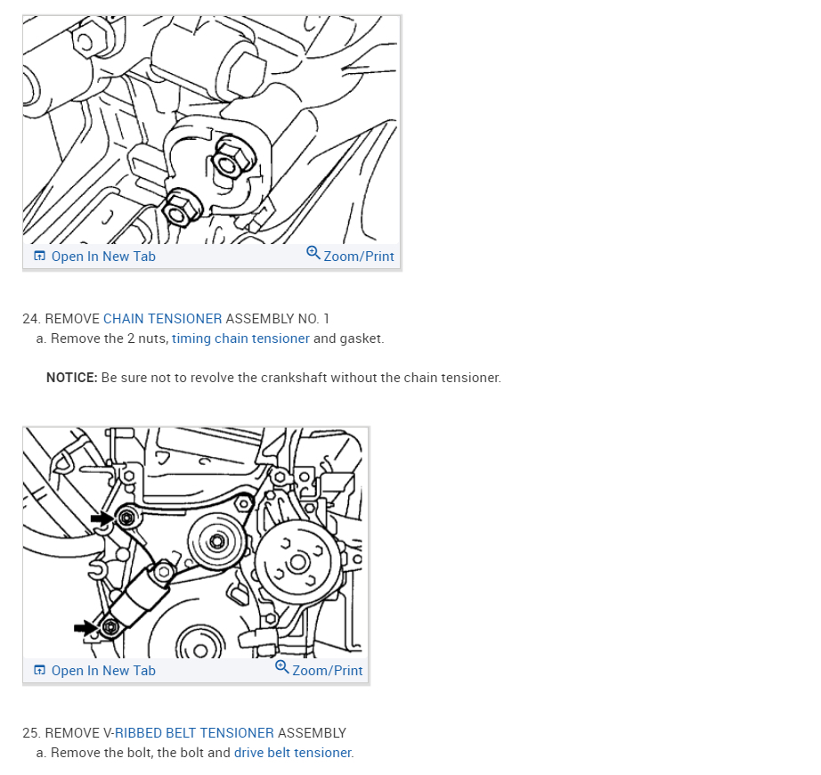 Next it will finish up with sealing the timing cover back on and the torque pattern for the timing cover bolts. So, if you're going to do this job I'll post the last few instructions, but as you can see it's a lot of work. Toyota doesn't seem to provide each step in sequence either. Each timing cover bolt has a different torque spec and an order as well. After that it's putting the engine mount back in and the drive belt tensioner. Let me know if you're to attempt this and ill post the timing cover specs. I'm sorry it's not an easier setup.