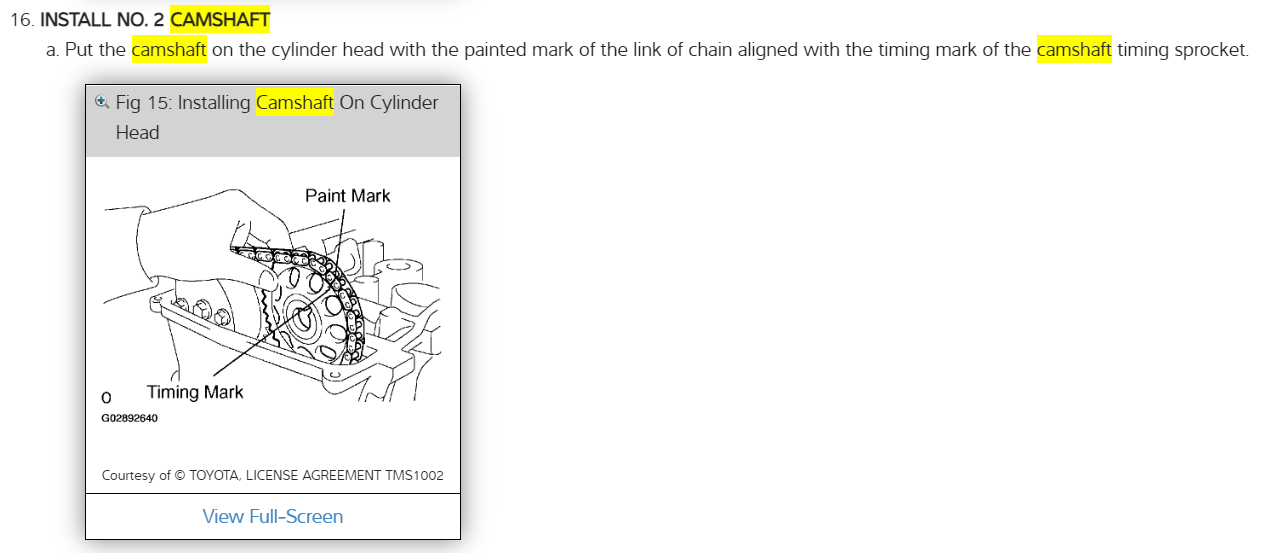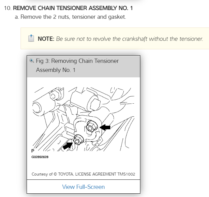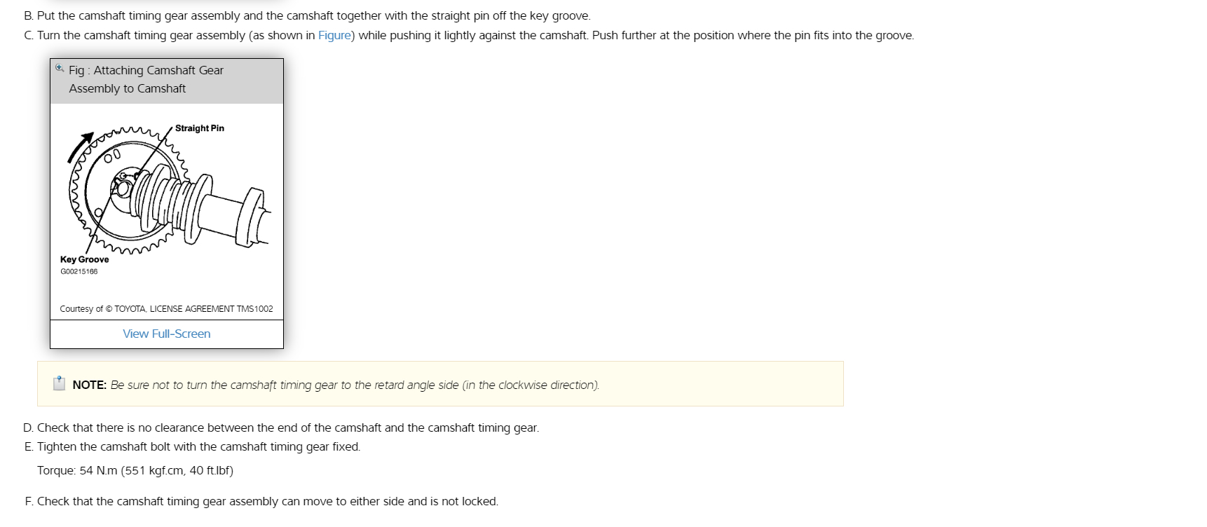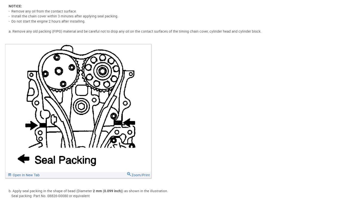 Next it will finish up with sealing the timing cover back on and the torque pattern for the timing cover bolts. So, if you're going to do this job I'll post the last few instructions, but as you can see it's a lot of work. Toyota doesn't seem to provide each step in sequence either. Each timing cover bolt has a different torque spec and an order as well. After that it's putting the engine mount back in and the drive belt tensioner. Let me know if you're to attempt this and ill post the timing cover specs. I'm sorry it's not an easier setup.