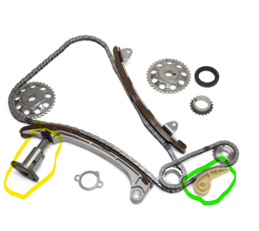 Yes, there shouldn't be any slack in the chain at all. I couldn't find a picture of the timing chain setup on All Data or ProDemand. But I found a picture of the kit. This kit does not include a picture of the camshaft VVT gear (second picture). But in the first picture you'll see in yellow is the main timing chain hydraulic tensioner. The chain guides are brown. The bottom chain set is a vibration dampener, and it has its own tensioner that is just spring loaded. So, the VVT gear could have failed, the main tensioner could have failed or one of the guides could have broken where they bolt on. Any one of those will cause slack in the chain. Since you have a code for VVT as well, if you're going to repair this all, I would replace the VVT cam gear as well. There's no sense of just replacing the tensioner to find out it was the VVT gear that failed, and the valve timing is still off. It's a big job doing these timing chains as you can see.