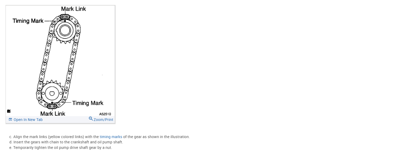 After the cover is off, it's pretty much lining up the marks correctly. These diagrams are installation guides as well. So, diagram eleven is lining up the marks for the #2 chain, reinstalling the lowest gear on the vibration damper (which also drives the oil pump).