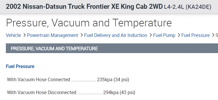 If you look at the pic below, I attached the manufacturer's fuel pressure specifications.