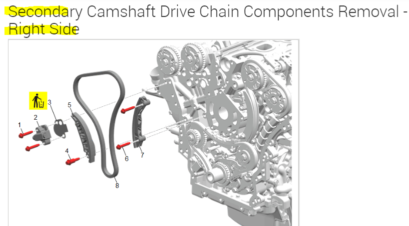 There are three timing chains on this engine, a primary, a left secondary, and a right secondary. See pics below.