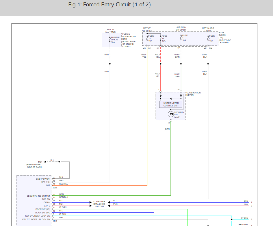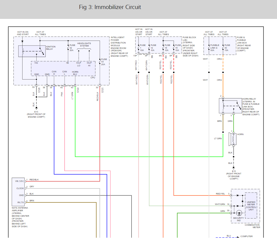 These cars had problems with the IPDM which it sounds like is the problem with your car. Here are instructions on how to change it out and the location of the unit with wiring diagrams that show you how the security system works. I would use the wring diagrams to show you which fuses to check (bunch of them).