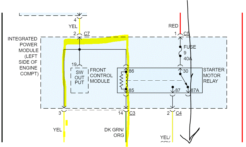 Because of the model year, you can't bypass the ignition switch. I did get the wiring schematic for the starting system for you. See pics below.