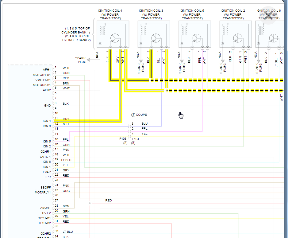 I had a replacement IPDM just in case, as it's a cheap one, same results. Measured fuel pressure and it's great at 50, plenty of fuel comes of the line too. It wants to start. Checked plugs just in case they were fouled/flooded, they looked dark as expected but none are wet, replaced them anyways as am preparing this car for a relative so mind as well. Battery shows 12 after I tickled charged it, but when you start it under load it drops to 5 or 6, so am charging it again, but even with a jumper box it still turns but doesn't start. Am starting to think it's. Spark issue. What controls the spark on these cars?
